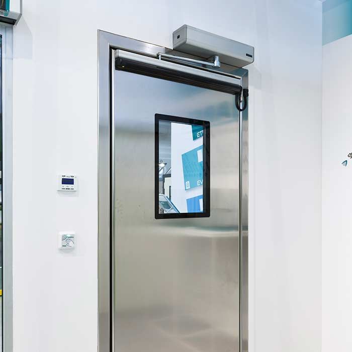 Die Verwaltung der Sicherheitssensoren, die Steuerung der sich bewegenden Kräfte sowie die Umkehrung der Bewegungsrichtung bei Vorhandensein von Hindernissen machen die automatischen Türen der Reihe LABEL NEPTIS PLUS äußerst sicher.